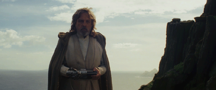 Okay, sure. We can do that. Look at the scene in The Last Jedi. It tells you everything you need to know about where Luke is right now. He’s in the middle of freaking nowhere because he’s done with the Jedi and everything they stood for. He thinks the galaxy is better off without him and all things Jedi. But somewhere deep down he’s still Luke. Look at his face when he takes the saber from Rey. He thinks about what it means. He feels what it all means. Then he comes to his senses and tosses it away because after that brief bit of nostalgia, he remembers his purpose. The Jedi ruined everything. Being a Jedi cost him Ben Solo. He failed his sister and his best friend. He failed his nephew. That lightsaber is the physical representation of all of that.